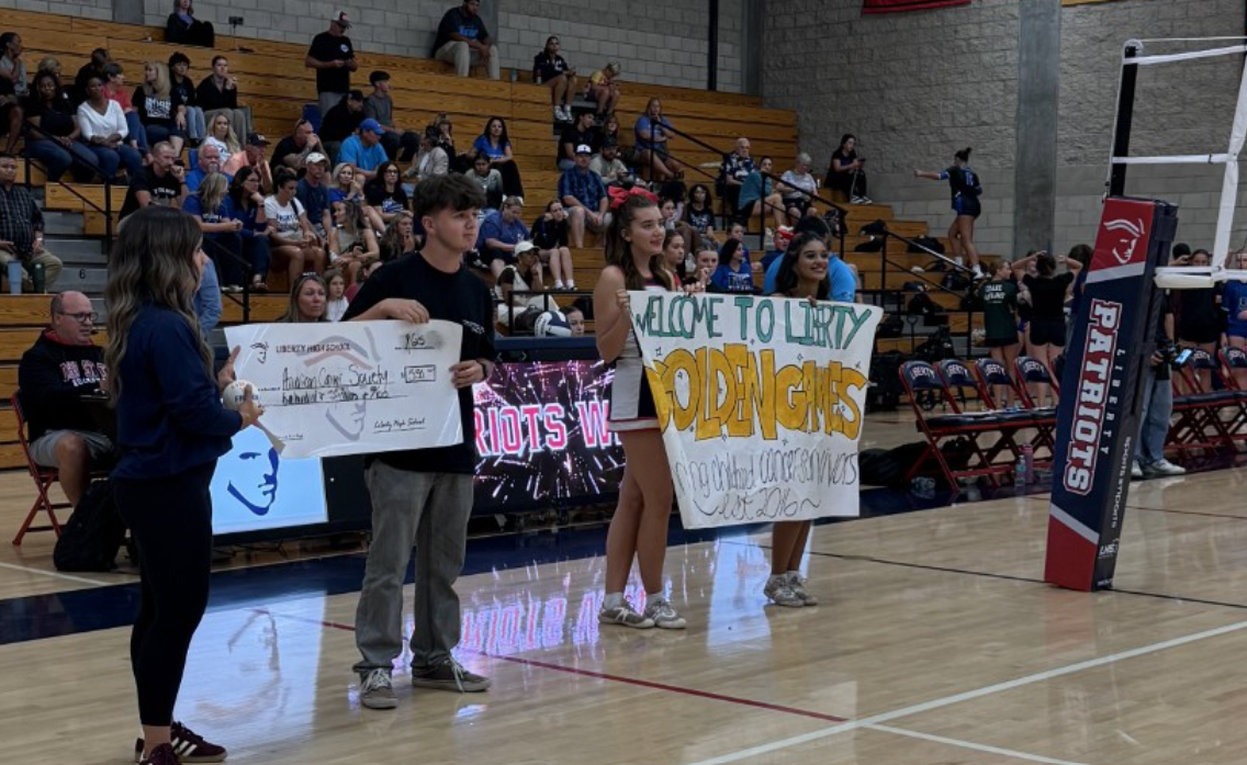 In 2016, Lucas Tate was invited to attend the Golden Games as one of those young honorees. On Thursday night, Lucas returned to that same tradition, now a junior Patriot and cancer survivor, to help present the check for $590 representing Liberty’s fundraising efforts for childhood cancer research.
