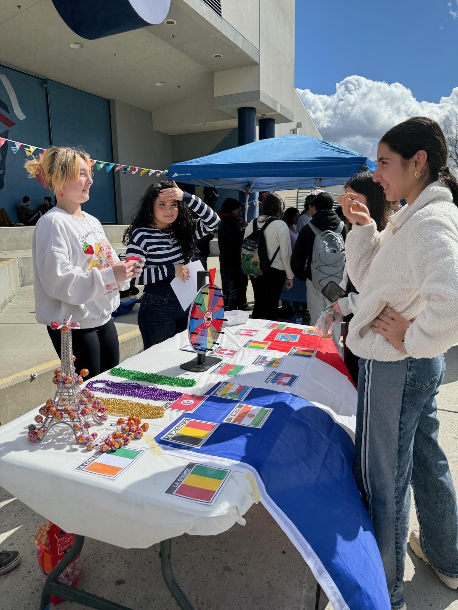 On Wednesday, the energy continued as clubs across campus hosted interactive booths during lunch. Students moved from table to table, learning, engaging, and celebrating culture in creative ways. At the Ethnic Studies booth, students wrote messages sharing what they appreciate about different cultures, creating a visible display of respect and understanding. The French Club drew in crowds with a prize wheel, while Spanish Honor Society highlighted the many Spanish-speaking countries around the world, broadening awareness of the richness and diversity within the Spanish language. BSU and the Asian Club also hosted tables filled with engaging activities that invited students to participate and learn more about different cultural traditions and histories.