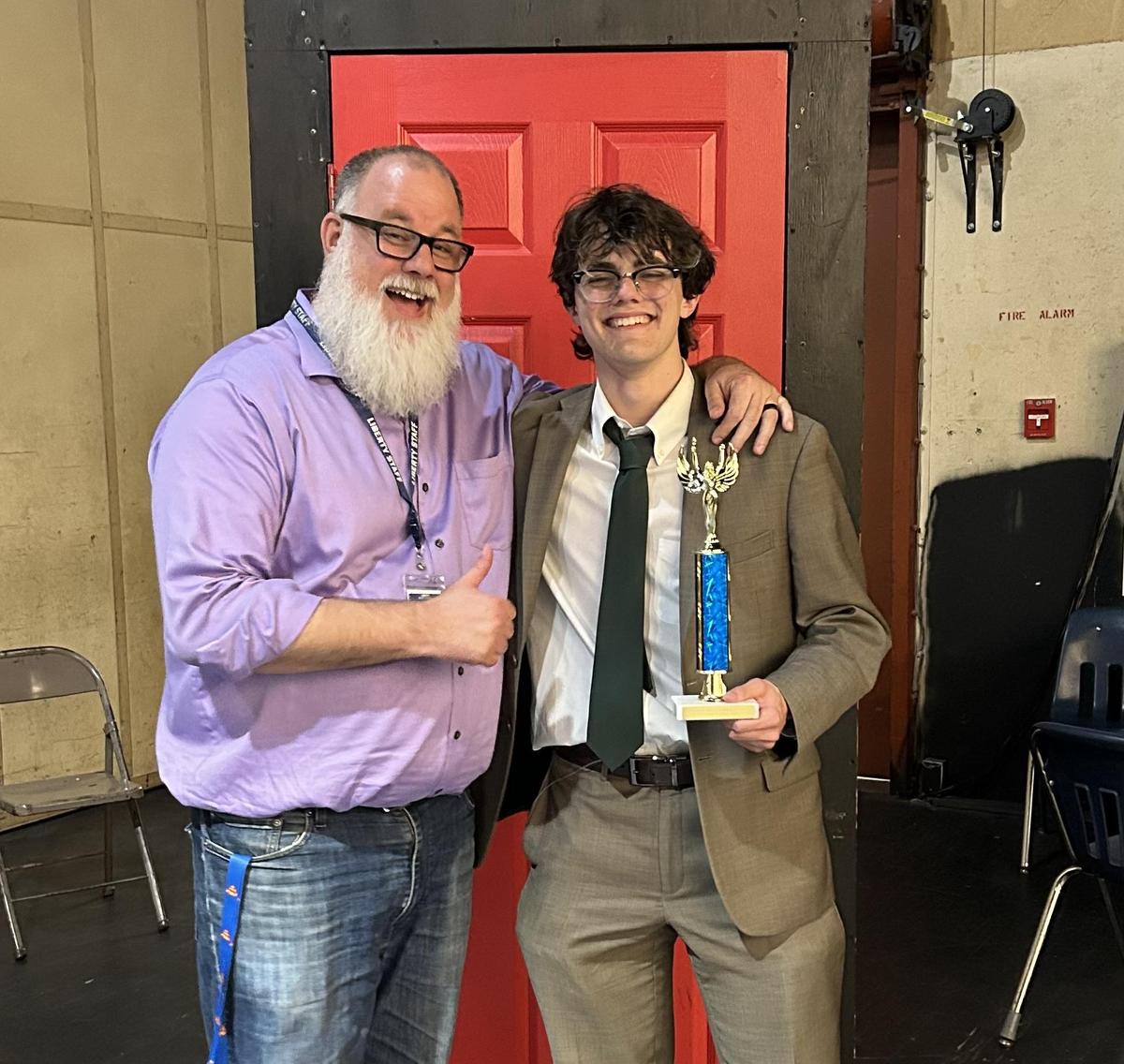 In the highly competitive Qualifier House, Robert Clegg and Aubree Gearhart proudly represented Liberty. Robert made history by bringing home Liberty’s first Valley Championship since the program’s return earlier this year. With his championship finish, Robert has earned the honor of representing Liberty High School at the California High School Speech Association’s State Championship Tournament, April 17–19 at James Logan High School in Union City.
