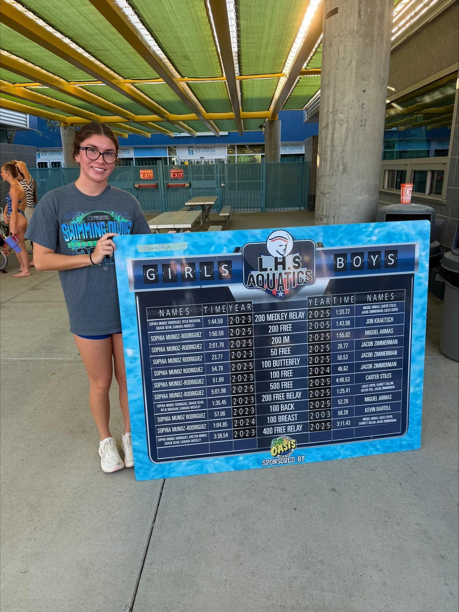 Beyond her success at the school level, Sophia has also reached national qualifying times through her club team, Roadrunner Aquatics, earning the opportunity to compete at one of the highest levels in the sport. Despite the demands of an intense training schedule, she has remained equally committed to her academics, maintaining strong grades throughout her high school career.